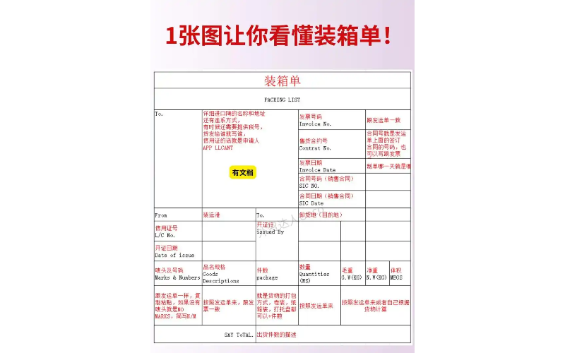 - 一份格式规范、翻译精准、细节无误的装箱单,向海外合作伙伴传递出严谨、可靠、专业的企业形象,提升商业信誉。